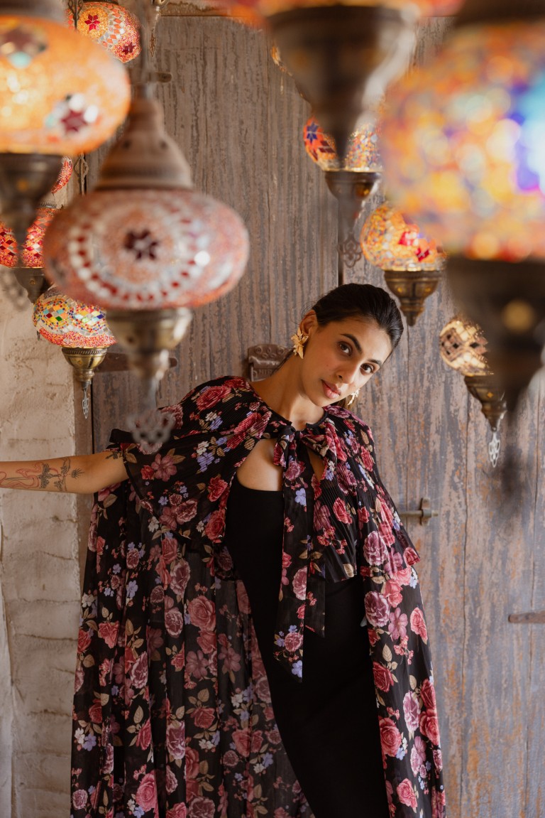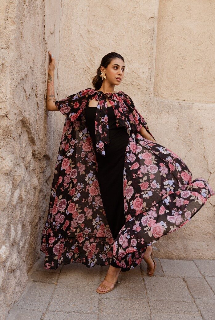 Colours: Black base with multicolor floral print