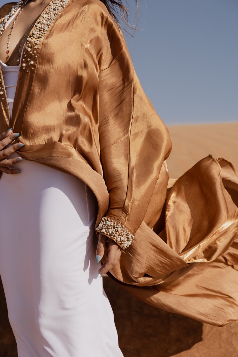 Material: Lightweight shimmer satin with a soft, fluid drape